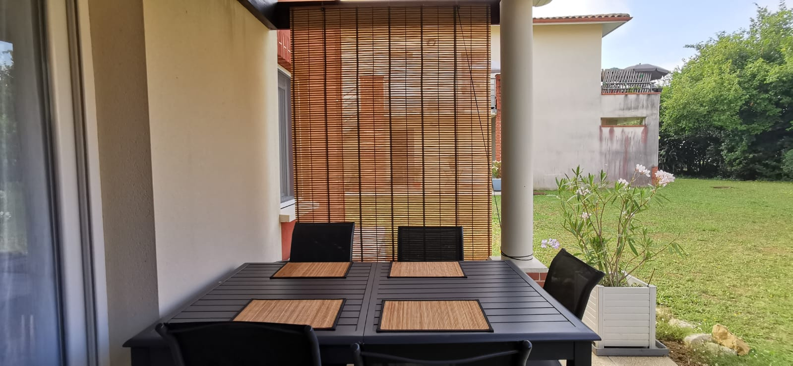 tres bel appartement T4 avec garage et terrasse couverte rdc garage , une place parking, une piece de vie avec cuisine équipée, wc garage etage 3 chambres , salle de bains avec wc double vitrage et moustiquaire charge de copropriété 1600€ :an